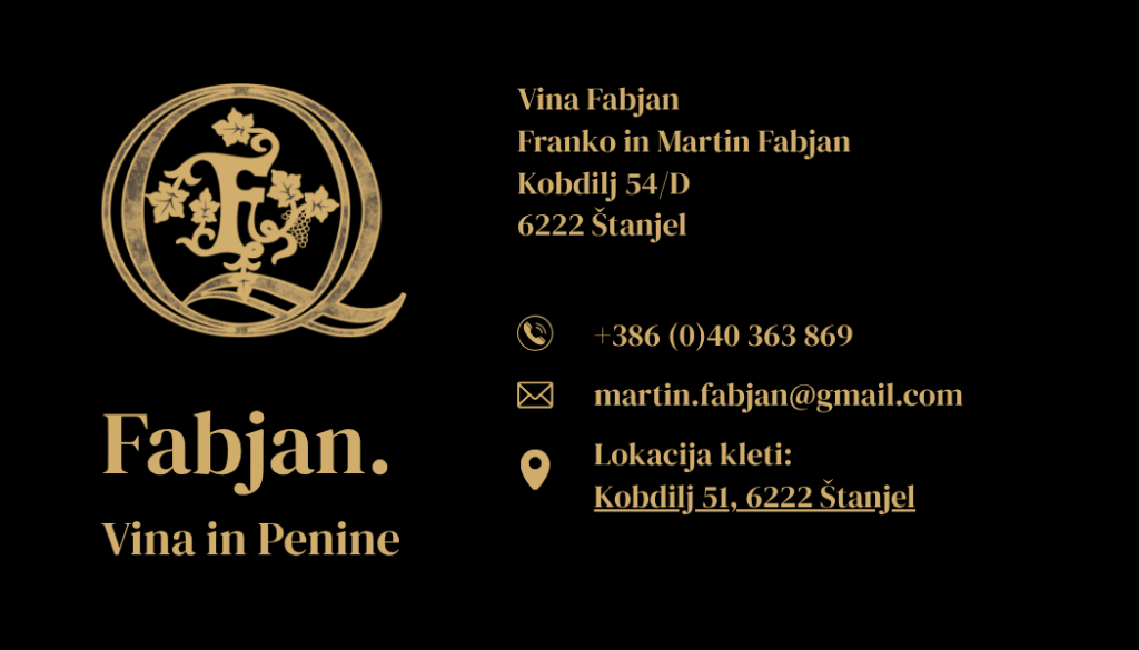 Naslov: Vina Fabjan, Kobdilj 54/D, 6222 Štanjel